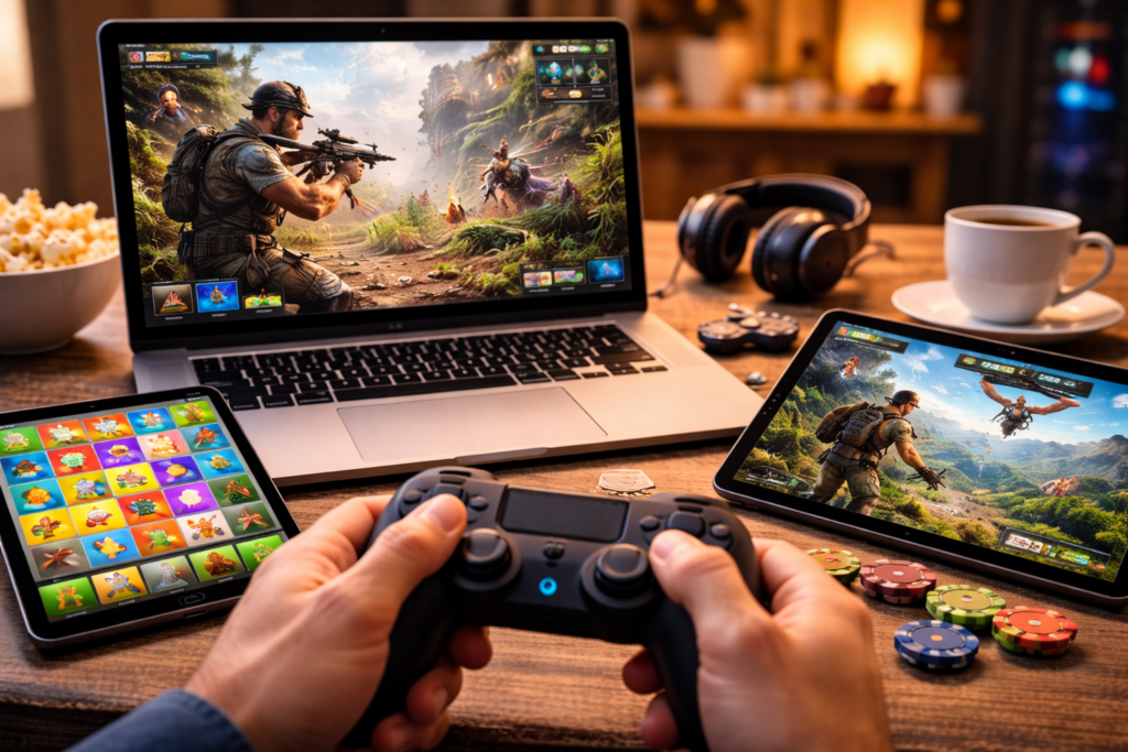 Games coexist with other digital tasks. People switch between communication, media, and play on the same device.