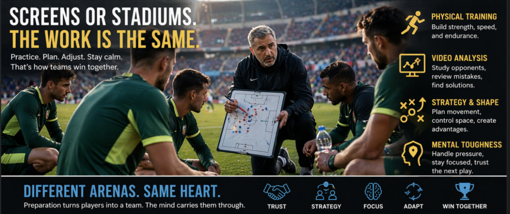 That may be the strongest link of all. Both kinds of teams need players who can reset after a mistake, stay focused, and trust the next moment. Screens and stadiums are not the same, but strong preparation in both worlds comes down to shared work, smart strategy, and steady minds. That is what turns a group of skilled people into a real team.